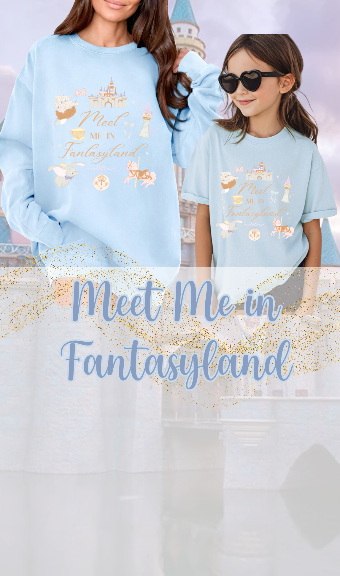 Meet Me in Fantasyland Adult Shirt and Crewneck, Light Blue or Lavender