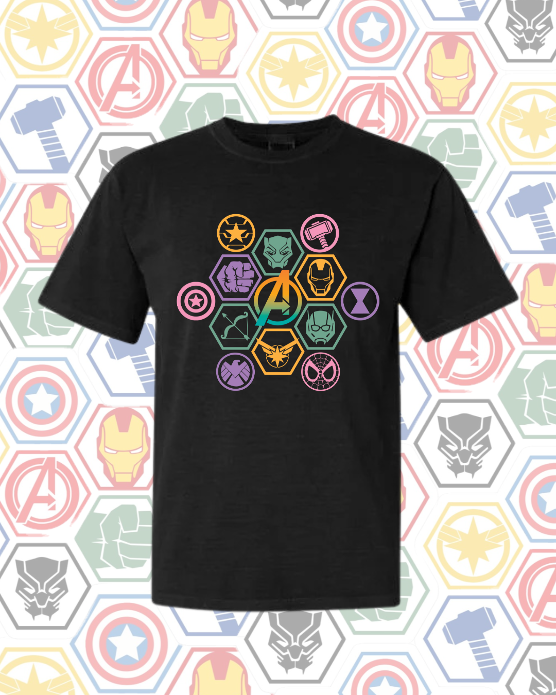 Pastel Heroes Crop and Shirt. Crops available in Small-2XL, shirts sizes Small-2XL.